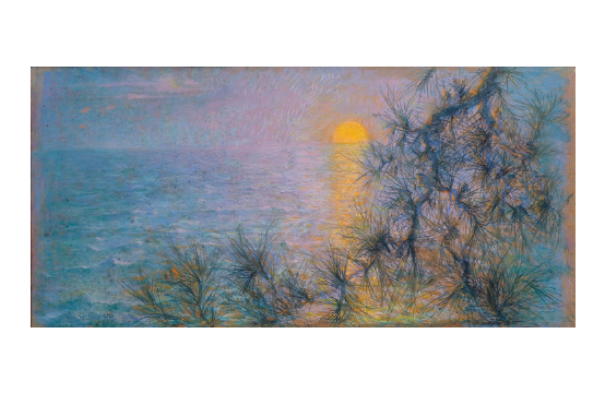Notre pastel en une créa donc la surprise dans cette vente aux enchères où il y en eut peu. Il était déjà solidement estimé entre 15 000 € et 20 000 €. C’est 50 700 € qu’il fallut débourser pour s’offrir ce grand coucher de soleil sur la mer à travers les pins (71,5 x 149 cm).
